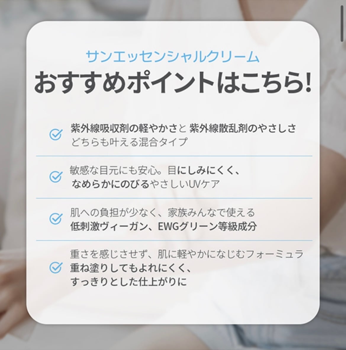肌に重さを感じさせず、軽やかにのびて、毎日のUVケアを快適にしてくれます。