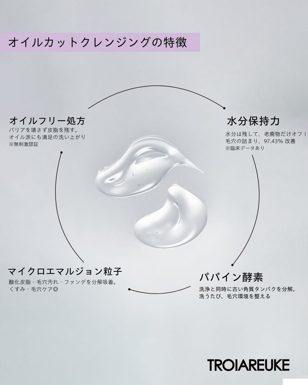 オイルフリー:メイク落としには油性成分が含まれがちですが、ACSENオイルカットクレンジングには油性成分が一切含まれていません。
