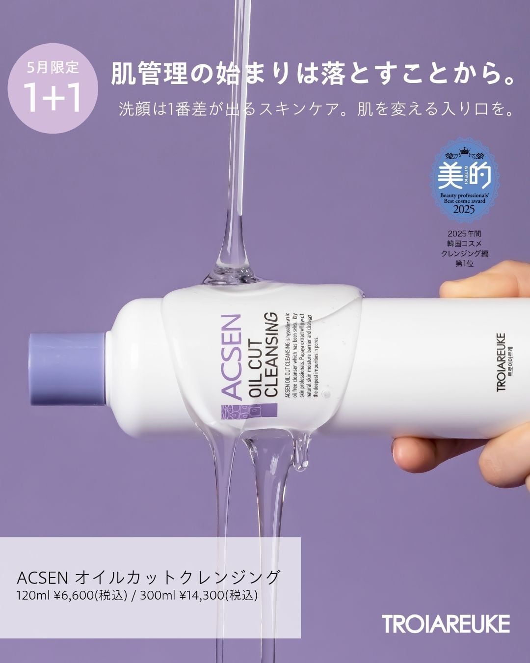 受注販売1+1【TROIAREUKE】ACSEN オイルカットクレンジング 300ml